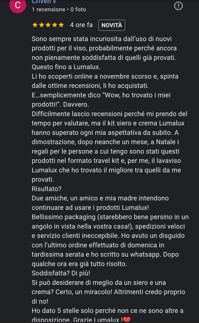 Un'ulteriore conferma che Lumalux è un brand reale, strutturato e affidabile.