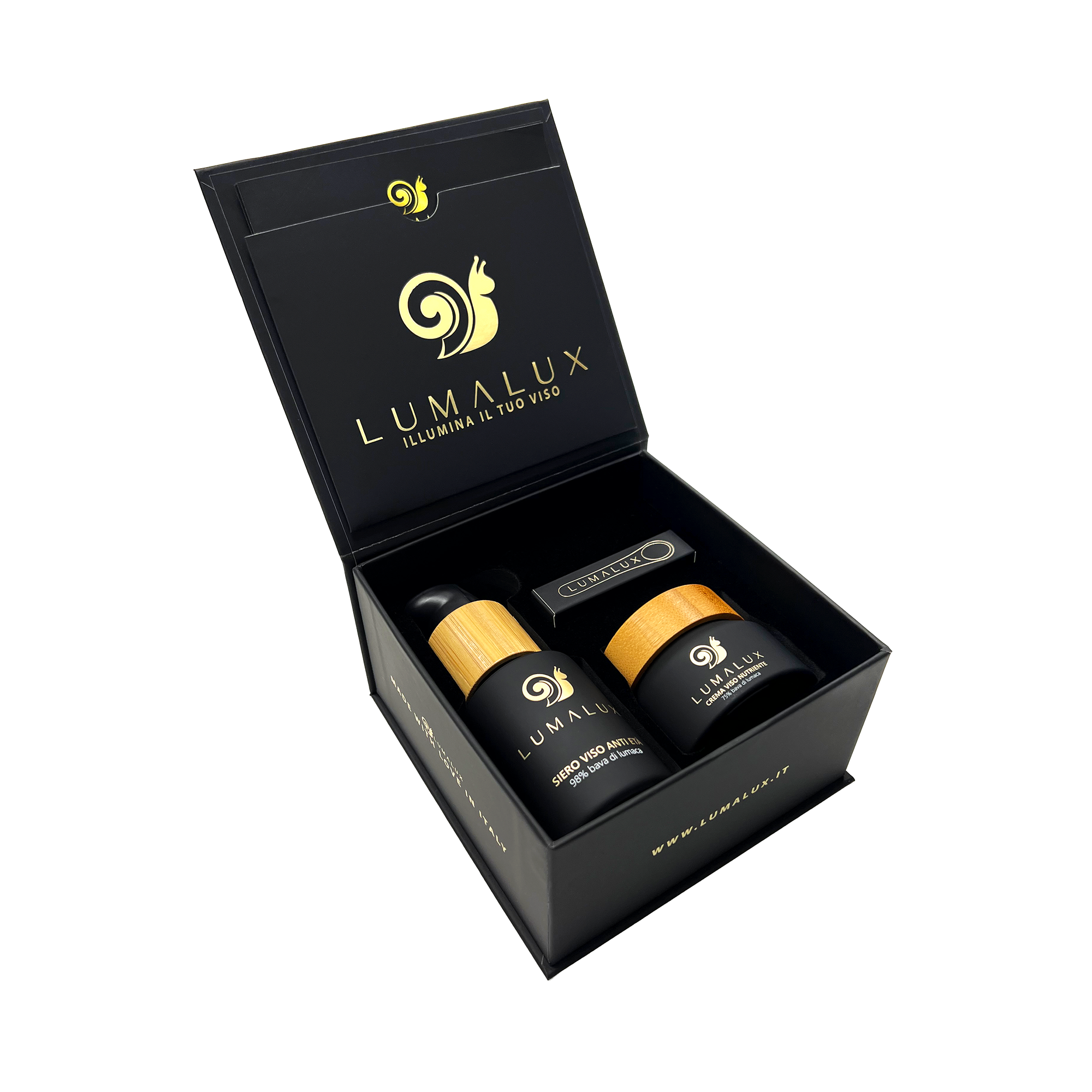 Kit Essenziale Siero 98% bava bio 50ml + Crema 75% bava bio 50ml Lumalux (2 prodotti)
